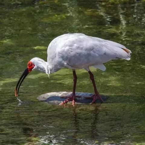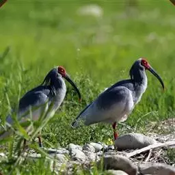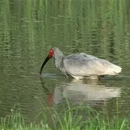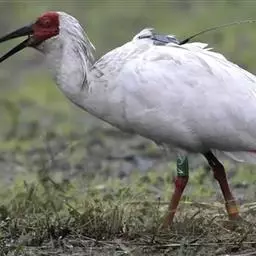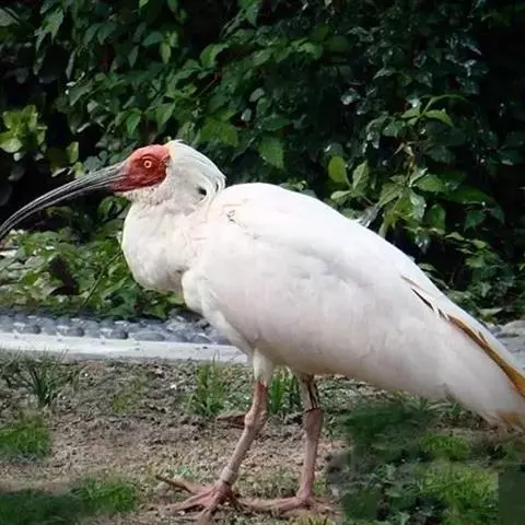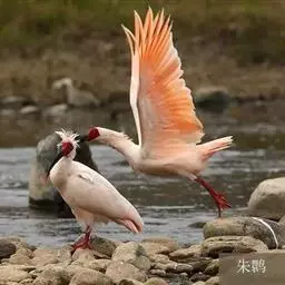 朱鹮(学名:Nipponia nippon):古称朱鹭、红朱鹭,朱鹮系东亚特有种。中等体型,体羽白色,后枕部有长的柳叶形羽冠,额至面颊部皮肤裸露,呈鲜红色;繁殖期时用喙不断啄取从颈部肌肉中分泌的灰色素,涂抹到头部、颈部、上背和两翅羽毛上,使其变成灰黑色。