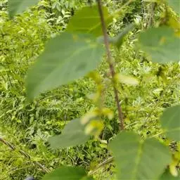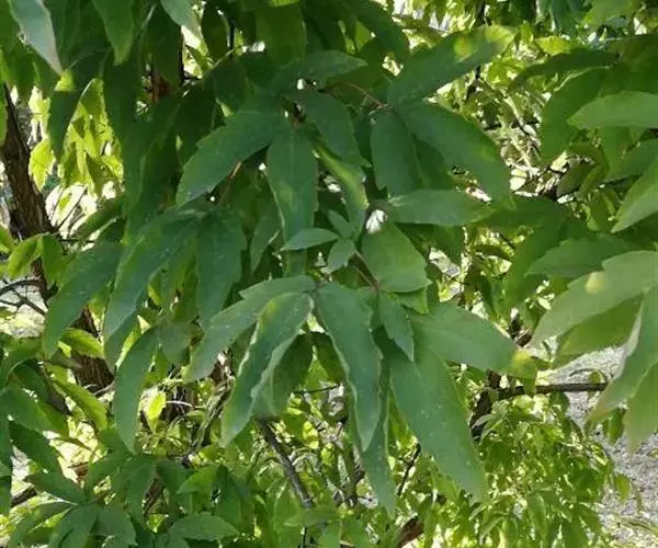 落叶乔木,高20-25米。树皮褐色,常成薄片脱落。小枝圆柱形,有圆形或卵形皮孔;当年生枝紫色或淡紫色,嫩时有稀疏的疏柔毛,多年生枝淡紫褐色。冬芽细小,鳞片边缘纤毛状,覆瓦状排列。覆叶由3小叶组成,小叶纸质,长圆卵形或长圆披针形,稀长圆倒卵形,长7-9厘米,宽2.5-3.5厘米,先端锐尖,边缘在中段以上有2-3个粗的钝锯齿,稀全缘;顶生小叶的基部楔形或阔楔形,小叶柄长5-7毫米;侧生小叶基部倾斜或钝形,小叶柄长1-2毫米;上面绿色,嫩时除沿叶脉有很稀疏的疏柔毛外,其余部分无毛;下面淡绿色,略有白粉,沿叶脉有白色疏柔毛;中肋在上面稍凹下,在下面凸起;侧脉11-13对,在下面显著;叶柄细瘦,淡紫色,长5-7厘米,近于无毛。