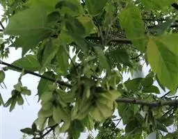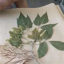 9月份翅果发育成熟、果皮变淡黄褐色时即可采收。选择发育健壮、树势强、无病虫害的树木为采种母树。用高枝剪剪下结果枝条,收集翅果,晾干,搓去果翅,去除果枝,果梗等杂质,风选后取得干洁种子,装袋后置于室内低温贮藏。