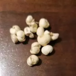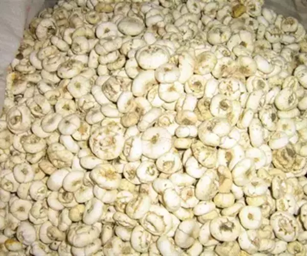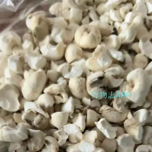 2、珠贝:为完整的鳞茎,呈扁圆形,高1~1.5cm,直径1~2.5cm。表面类白色,外层鳞叶2瓣,肥厚,略似肾形,互相抱合,内有小鳞叶2~3枚和干缩的残茎。