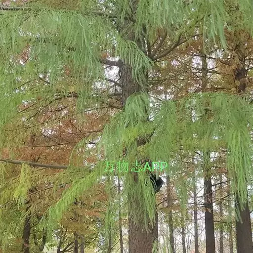 落羽杉 Rich.),杉科落羽杉属木本植物。树干尖削度大,基部通常膨大,具膝状呼吸根,树皮棕色,…