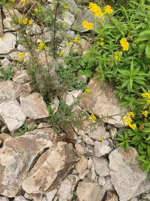 糙叶败酱( Patrinia rupestris Juss.subsp.scabra H.J.Wang),败酱科植物,多年生草本,茎丛生,茎上部多分枝,叶对生,裂片倒披针形、狭披针形或长圆形,聚伞花序顶生,呈伞房状排列,花小,黄色,花冠合瓣,果实翅状,卵形或近圆形,种子位于中央。