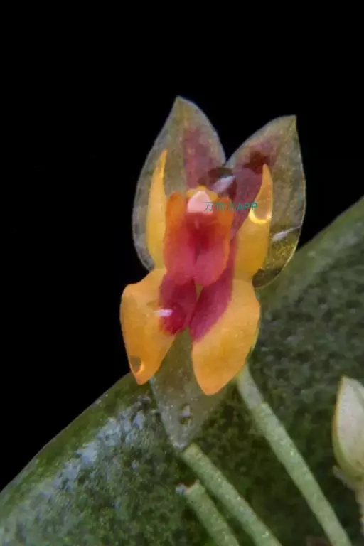 花瓣近似于萼片,较小,先端圆钝;前唇半圆状三角形或新月状三角形,向前伸展,长2-3毫米,宽5-7毫米,边缘具不整齐的流苏或啮蚀状,上面中央增厚的垫状物黄色带紫色斑点、无毛,其余密生或疏生乳突状白色长毛,垫状物基部具一个穴窝;后唇盔状,黄绿色带紫红色的上部边缘,长等于宽,约5毫米,上端具截形的口缘;口缘明显比前唇高,前端具1个凹口,其两侧边缘直立。花期3-4月。