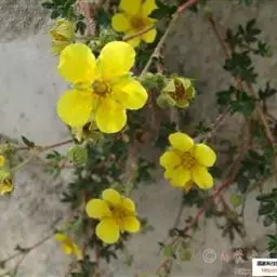 金露梅 Rydb.),蔷薇科金露梅属植物。灌木,高0.5~2米,多分枝,树皮纵向剥落。羽状复叶,…