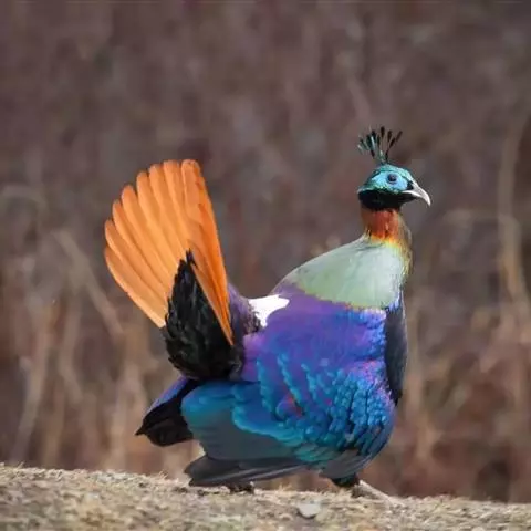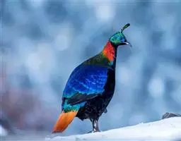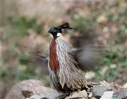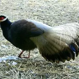 黑长尾雉大型鸡类,体长53~88厘米。雄较雌大。雄鸟通体紫蓝色,脸鲜红色,翅上有一条显著的白色翅斑…