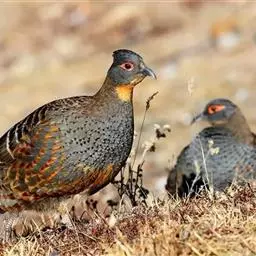 黄腹角雉:是鸟纲、雉科中国特产的一种鸟类。体长约50-65厘米。雄鸟上体栗褐色,…