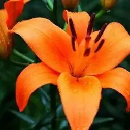 施肥培土:秋季栽植的南川百合,在土壤封冻前追肥1次。每公顷用猪牛粪15000千克左右铺撤畦面。如条件可能,可用腐熟饼肥750-1125千克,效果更好,春季出苗前,如土壤肥力差或基肥不充足,可补施氮、磷、钾复合肥,每公顷用量为225-300千克,但不可过多施用碳酸氢铵和含酸重的过磷酸钙及氯化钾,以免烧伤将要出土的幼芽。如果补施草木灰,则效果更好。一般情况下可先补肥后松土,在表土晒白后,再进行清沟,把沟底的积泥重新覆盖在畦面上。于4月上旬清明节前后,南川百合苗逐步长高约在10厘米时,要及时施肥提苗,促进秧苗生长。当珠芽成熟,标志南川百合已进入后期生长,在及时收获珠芽后,如南川百合叶色逐渐变浅,说明养分已失调,必须增加养分防止南川百合早衰。此时要适量补施速效化肥。南川百合开花期,每公顷用300千克碳酸氢铵对水浇施,可收到较好的效果。另外,也可在叶面喷施浓度0.2%的磷酸二氢钾,以满足南川百合后期对磷、钾的需要。此外还需注意在打顶后要适当控制追肥,特别是氮肥,以防止茎叶过旺生长,影响鳞茎发育肥大。