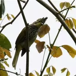 纹喉鹎:体长19厘米,是一种中等体型的偏绿色鹎。特征为头顶、脸颊、颏及喉均具黄色条纹。上体橄榄绿色。…
