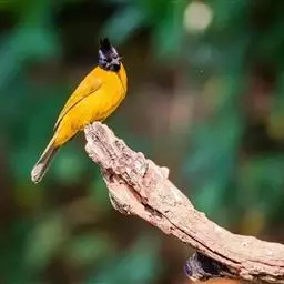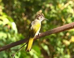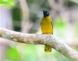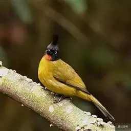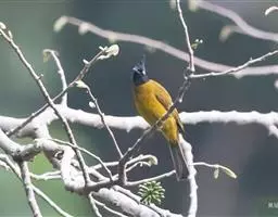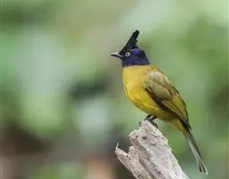 黑冠黄鹎:体长18-21厘米,是一种中等体型偏黄色鹎。整个头、颈、颏、喉黑色,头顶有显著直立的羽冠,…