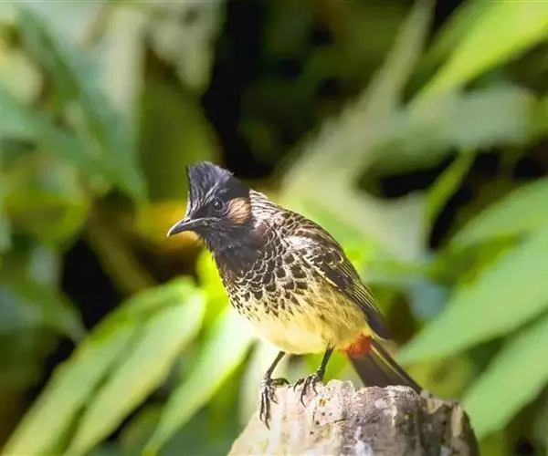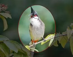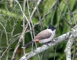 黑喉红臀鹎(学名:Pycnonotus cafer):体长19-23厘米,是一种中等体型的偏褐色鹎。额至头顶、眼先、眼周、嘴基和颏、喉全为黑色,具羽冠,耳羽红褐色。背暗褐到黑褐色。尾下覆羽绯红,尾上覆羽近白,虹膜深褐色;嘴黑色;脚暗角质色至黑色。