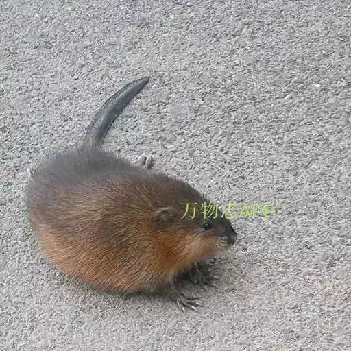 麝鼠(学名:Ondatra zibethicus):又名麝香鼠,青根貂,是麝鼠属中的唯一成员,一种小型珍贵毛皮兽。体型像个大老鼠,身长35-40厘米,尾长23-25厘米,比田鼠体型大,体重0.8-1.2千克。麝鼠周身绒毛致密,背部是棕黑色或栗黄色,腹面棕灰色。尾长呈棕黑色,稍有些侧扁,上面有鳞质的片皮,有稀疏的棕黑杂毛。刚离窝独立生活的小鼠,尾巴的侧扁不明显。麝鼠头小,稍扁平,颈短而粗与躯干部没有明显界限。眼小,耳短隐于长被毛之中,耳孔有长毛堵塞。嘴钝圆,有胡须。上下颌各有一对长而锐利的门牙,呈浅黄色或深黄色,露于唇外。四肢短,前足4趾,爪锐利,趾间无蹼,后足略长于前足,趾间有半蹼,并有硬毛。