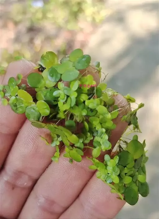 飘浮植物。叶状体对称,表面绿色,背面浅黄色或绿白色或常为紫色,近圆形,倒卵形或倒卵状椭圆形,全缘,长1.5-5毫米,宽2-3毫米,上面稍凸起或沿中线隆起,脉3,不明显,背面垂生丝状根1条,根白色,长3-4厘米,根冠钝头,根鞘无翅。