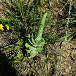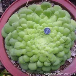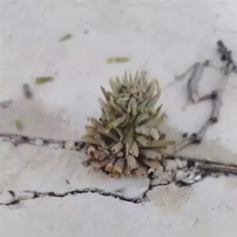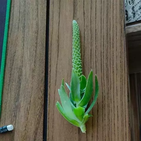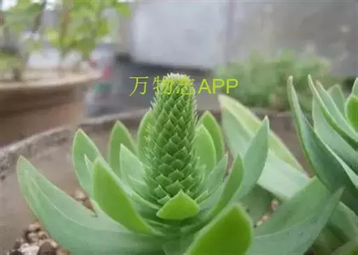 钝叶瓦松〔学名:Orostachys malacophylla (Pall.) Fisch.〕是景天科,瓦松属二年生肉质草本植物。钝叶瓦松属于轴根型植物,茎生叶互生,花序紧密,苞片匙状卵形,花常无梗;萼片长圆形,花瓣白色或带绿色,长圆形至卵状长圆形,雄蕊较花瓣长,花药黄色;种子卵状长圆形。7月开花,8-9月结果。