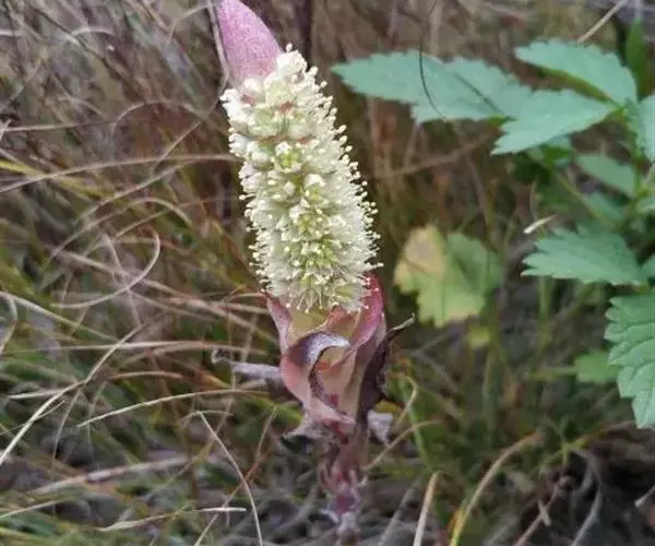 花序紧密,总状,有时穗状,有时有分枝;苞片匙状卵形,常啮蚀状,上部的短渐尖;花常无梗;萼片5,长圆形,长3-4毫米,急尖;花瓣5,白色或带绿色,长圆形至卵状长圆形,长4-6毫米,边缘上部常带啮蚀状,基部1-1.4毫米合生;雄蕊10,较花瓣长,花药黄色;鳞片5,线状长方形,长0.3毫米,先端有微缺,心皮5,卵形,长4.5毫米,两端渐尖,花柱长1毫米。种子卵状长圆形,长0.8毫米,有纵条纹。花期7月,果期8-9月。