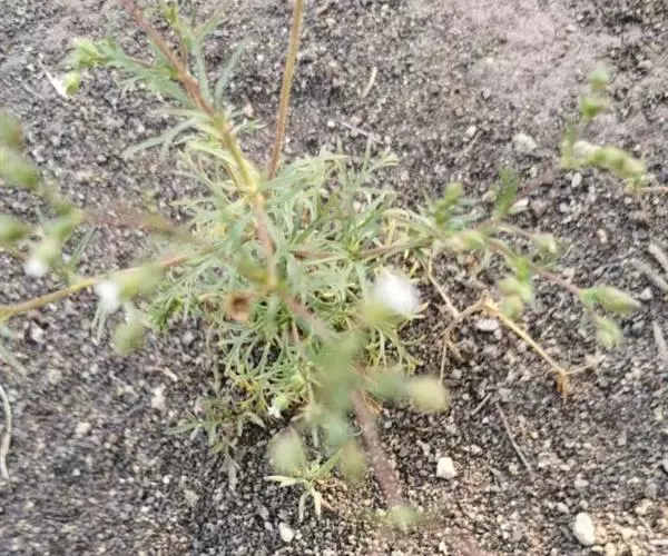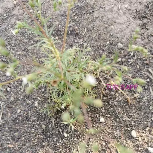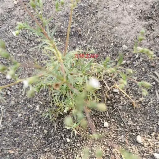 二年生草本或一年生草本,具长柔毛及腺毛;根木质;茎直立或弧曲上升,高20-50cm,单一,少有多茎丛生,基部稍木质化,常在上部分枝。基生叶密生,莲座状,长1-2.5cm,二回羽状三深裂,侧裂片二深裂,中央裂片常三深裂,二回裂片具缺刻或三浅裂,小裂片条形,长1-2mm,先端圆钝,基部楔形,全缘,果期枯萎;叶柄长1-2.5cm;托叶形状似叶,三至多深裂;茎生叶似基生叶,三深裂,近无柄。聚伞花序顶生,具多花,二歧分枝形成圆锥花序,直径1.5-3cm;苞片及小苞片2-3裂,裂片条形;花梗细,长3-6mm;花直径2-3mm;萼筒倒圆锥形或钟形,长1mm,萼片卵状披针形,长1-2mm,先端渐尖;花瓣倒卵形,长2-3mm,白色或粉红色,无毛,先端圆钝,基部有短爪;花丝比花瓣短;心皮10-15,离生,花柱侧基生,子房卵形或长圆形,长1-1.5mm,深褐色,无毛,平滑,先端具尖头。花果期6-8月。