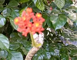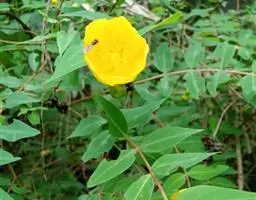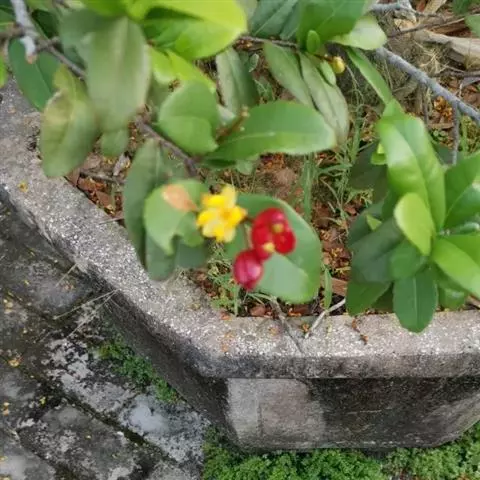 桂叶黄梅(学名:Ochna thomasiana Engl. & Gilg)是金莲木科,金莲木属常绿灌木,株高可达3米,树干修长,树皮褐色,叶互生,近无柄;叶片椭圆形,革质,边缘有针状锯齿,中脉明显。花小,两性,离瓣花;花萼结果时增大,宿存,暗红色;花瓣黄色;雄蕊多数,花丝宿存;子房上位。果皮薄,未成熟时绿色,成熟时黑色,每个果实中有种子1粒,褐色。