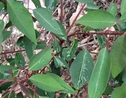 桂叶黄梅常绿灌木,株高1-3米,树干修长,密被小而灰白色的突起,树皮褐色,枝叶较稀。叶互生,近无柄;叶片椭圆形,革质,长4-7厘米,宽1.5-4厘米,先端渐尖,基部圆,边缘有针状锯齿,中脉明显。新抽嫩叶浅红色,老叶变成有光泽的绿色。