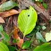 叶对生,薄纸质,多少为长圆卵形,长7-8厘米,宽4-5.5厘米,先端钝尖或渐尖,基部宽楔形或近于圆形,有时两侧稍不对称,上面黄绿色,疏被黄色平贴短柔毛,下面淡白色,密被白色乳头状突起及稀疏的平贴短柔毛,中脉在上面微凹下,下面凸出,侧脉7-8对,在上面稍凹下,下面明显;叶柄纤细,长1.5-2厘米,疏被黄色贴生短柔毛,上面有浅沟,下面圆形。