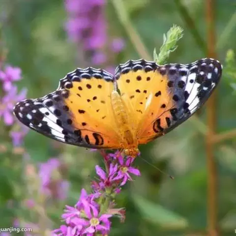 绿豹蛱蝶,属鳞翅目(Lepidoptera),蛱蝶科(Nymphalidae)豹蛱蝶属。分布在 黑龙江,辽宁,吉林,河北,河南,新疆,宁夏,陕西,甘肃,浙江,四川,西藏,湖北,江西,福建,广西,广东,云南,台湾;欧洲,日本,朝鲜,非洲等。翅面橙黄微有褐色,斑纹黑色,翅基色暗,密布褐色绒毛,中室内有4条横纹,外缘有1列连续黑斑。其内侧有2列平行黑斑;中室外有3个黑斑排列为三角形。