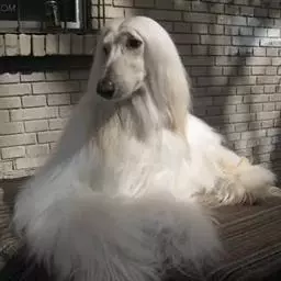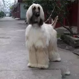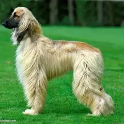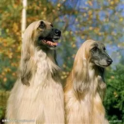 阿富汗猎犬全身披丝绢状的长毛,毛色鲜艳,呈多种颜色,背中线附近毛短,…