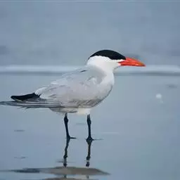 红嘴巨鸥,大型水鸟,体长47~55厘米。夏羽前额、头顶、枕和冠羽黑色。后颈、尾上覆羽和尾白色,…