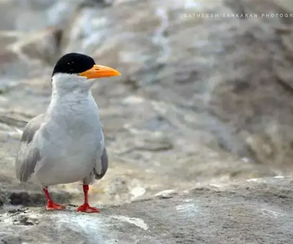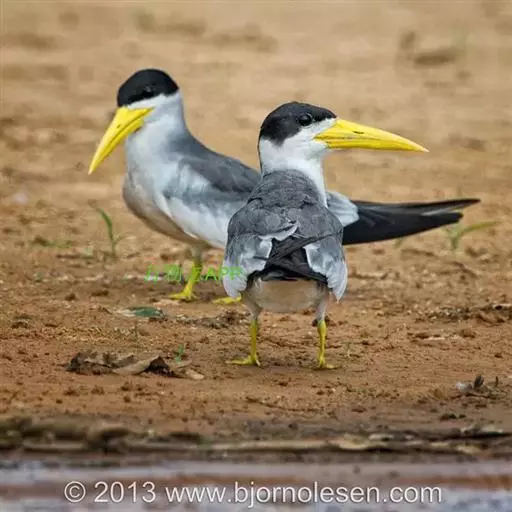 黄嘴河燕鸥(学名:Sterna aurantia)体长37-43厘米,体重为134-170克。是中等体型的头顶黑色的燕鸥。嘴大,黄色,腿红或橘黄色,尾深叉而形长。上体、腰及尾深灰,外侧尾羽白,翼尖近黑。越冬成鸟嘴端黑色,额及头顶偏白。幼鸟同冬季成鸟,但头顶及上体褐色,胸两侧沾灰。似黑腹燕鸥,但体型大许多,且下体白色。在繁殖地驱赶其他入侵者时发出愤怒的ping声。