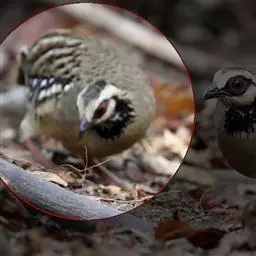 褐胸山鹧鸪:雄鸟体长22厘米,体重310克;雌鸟体长23厘米,体重220-275克。前额皮黄白色,…