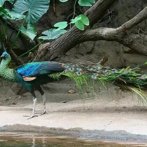 刚果孔雀栖息于海拔1200米以下的热带雨林深处,一般在水源附近活动。