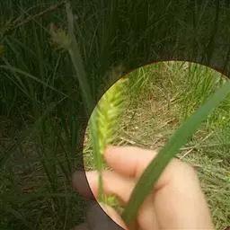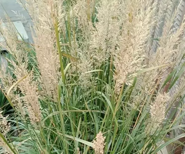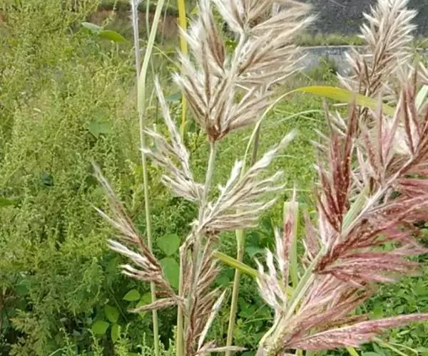 圆锥花序大型,稠密,长30-80厘米,宽5-10厘米,主轴无毛,每节着生2-4枚分枝,分枝2-3回分出,腋间被微毛;总状花序轴节间与小穗柄细线形,长3-5毫米,被长丝状柔毛,顶端稍膨大;无柄与有柄小穗狭披针形,长3.5-4毫米,黄绿色或带紫色,基盘小,具长约1毫米的短柔毛;两颖近等长,草质或稍厚,顶端渐尖,第一颖沿脊微粗糙,两侧脉不明显,背部具长于其小穗一倍以上之丝状柔毛;第二颖具3(-5)脉,脊粗糙,上部边缘具纤毛,背部无毛,但在有柄小穗中,背部具有长柔毛;第一外稃等长或稍短于颖,具1-3脉,顶端尖,上部边缘具小纤毛;第二外稃披针形,稍短或等长于颖;顶端具小尖头,或在有柄小穗中,具长3毫米之短芒,上部边缘具细纤毛;第二内稃长圆形,长约为其外稃之半,顶端具纤毛;花药长1.8-2毫米;柱头紫黑色,长约2毫米,为其花柱之2倍,自小穗中部两侧伸出。