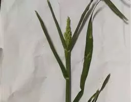 叶鞘长于其节间;叶舌膜质,顶端截平;叶片宽大,线状披针形,无毛。圆锥花序大型,稠密,主轴无毛;总状花序轴节间与小穗柄细线形,黄绿色或带紫色。颖果长圆形,胚长为颖果之半。 花果期8-12月。