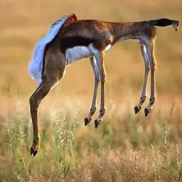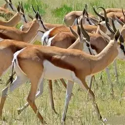 跳羚是哺乳纲、偶蹄目、牛科哺乳动物,属于中型的羚羊。四肢细长;背面毛色黄褐,…