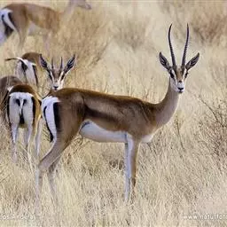 阿拉伯沙瞪羚:是偶蹄目、牛科、瞪羚属的食草动物。头尾长97厘米,身高约55-60厘米。…