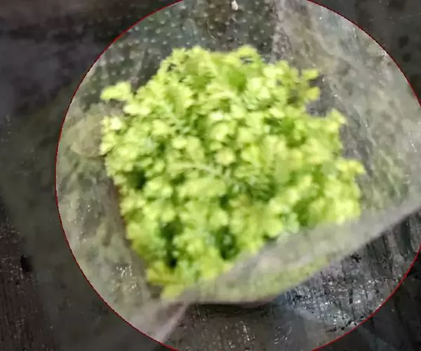 小叶冷水花(Pilea microphylla (L.) Liebm.)纤细小草本,无毛,铺散。茎肉质,多分枝,干时常变蓝绿色,密布条形钟乳体。叶很小,同对的不等大,倒卵形至匙形,上面绿色,下面浅绿色,干时呈细蜂巢状,钟乳体条形,上面明显,横向排列整齐,叶脉羽状;叶柄纤细;托叶三角形。雌雄同株,有时同序,聚伞花序密集成近头状,具梗。雄花具梗;花被片卵形;退化雌蕊不明显。雌花更小;花被片稍不等长;退化雄蕊不明显。瘦果卵形,熟时变褐色,光滑。花期夏秋季,果期秋季。