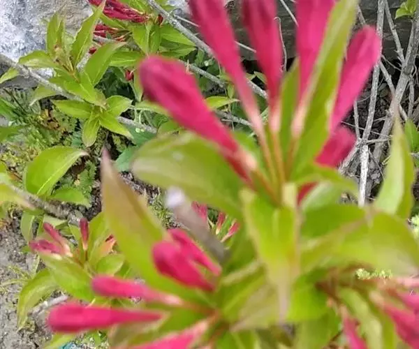 锦带花属落叶灌木,高达1-3米;幼枝稍四方形,有2列短柔毛;树皮灰色。芽顶端尖,具3-4对鳞片,常光滑。叶矩圆形、椭圆形至倒卵状椭圆形,长5-10厘米,顶端渐尖,基部阔楔形至圆形,边缘有锯齿,上面疏生短柔毛,脉上毛较密,下面密生短柔毛或绒毛,具短柄至无柄。