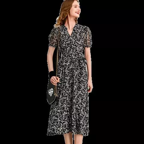 印花雪纺裙