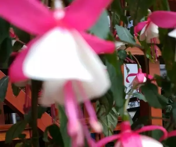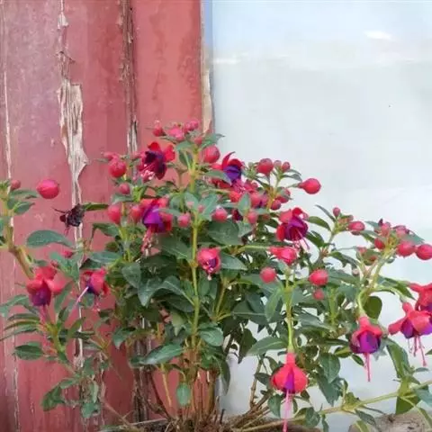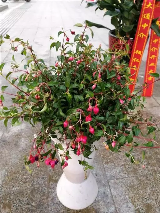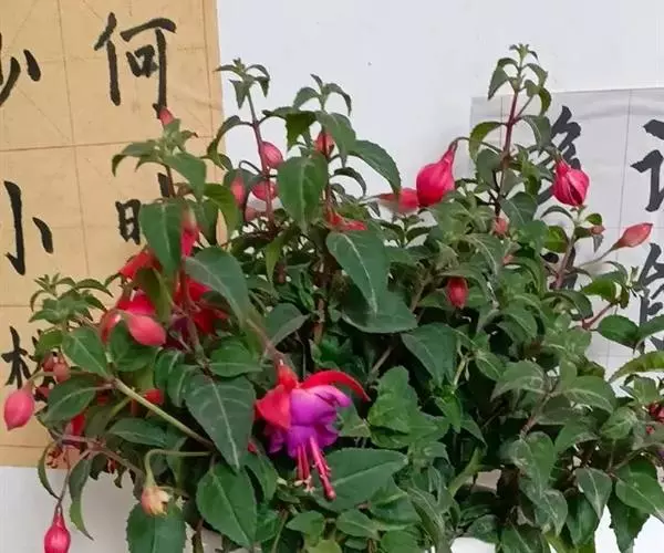倒挂金钟花形奇特,极为雅致。盆栽用于装饰阳台、窗台、书房等,也可吊挂于防盗网、廊架等处观赏。