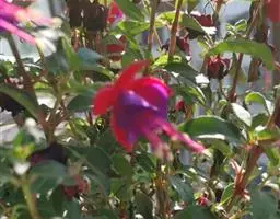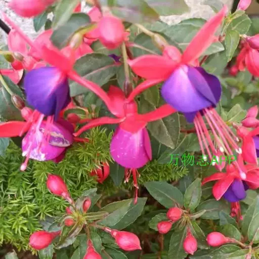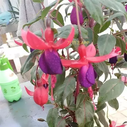 倒挂金钟(拉丁学名:Fuchsia hybrida hort. ex Sieb. et Voss ),别名:灯笼花、吊钟海棠。多年生半灌木,茎直立。高50-200厘米,粗6-20毫米,多分枝,被短柔毛与腺毛,老时渐变无毛,幼枝带红色。叶对生,卵形或狭卵形,长3-9厘米,宽2.5-5厘米。喜凉爽湿润环境,怕高温和强光,以肥沃、疏松的微酸性壤土为宜,冬季温度不低于5℃。
