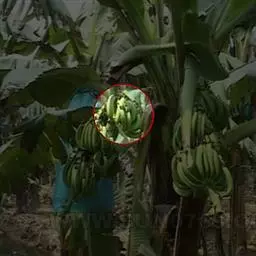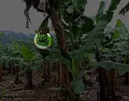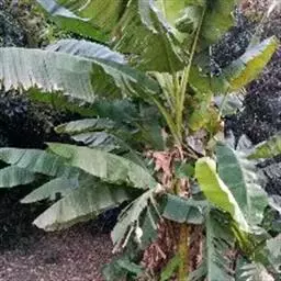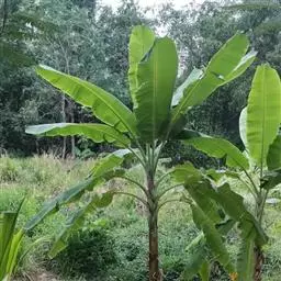 香蕉’),芭蕉科芭蕉属多年生草本植物,植株丛生,有匐匍茎;假茎浓绿有黑色斑点;叶片长圆形,…