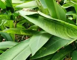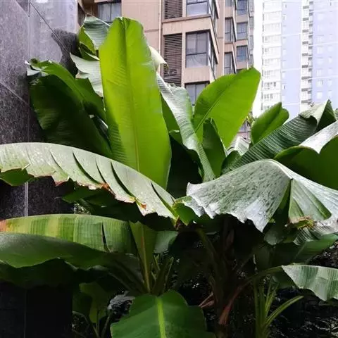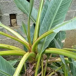 红蕉,假茎高1-2米。叶片长圆形,长1.8-2.2米,宽68-80厘米,叶面黄绿色,叶背淡黄绿色,…
