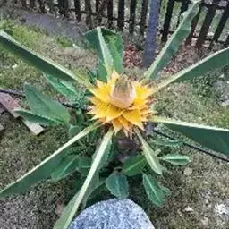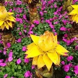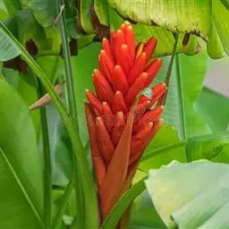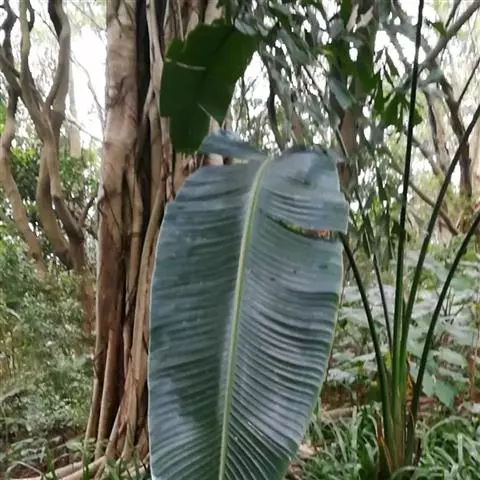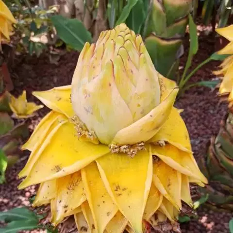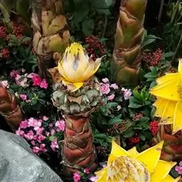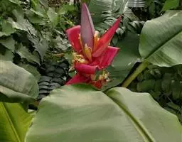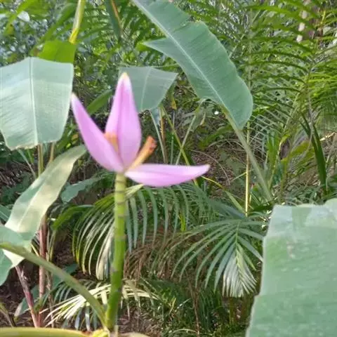 紫苞芭蕉形如一枝亭亭玉立、含苞待放的荷花,但却开在高高的芭蕉树上,这就是紫苞芭蕉。