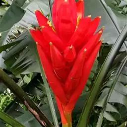 金嘴蝎尾蕉的花序长而下垂,花姿奇特,花色艳丽,花形似鸟喙状,东南亚一带极受人们的欢迎。