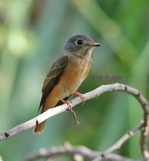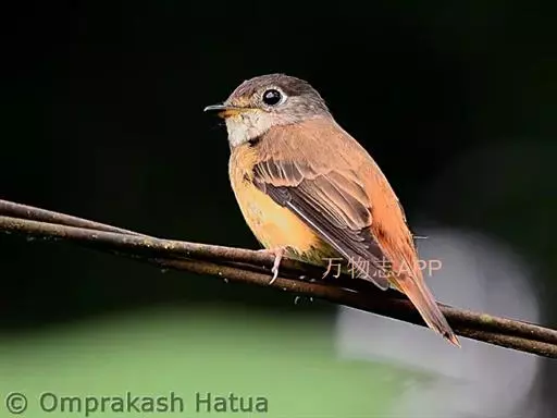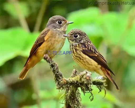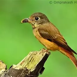 棕尾褐鹟(Muscicapa ferruginea ):体重9-16克;体长109-122毫米,是一种体型略小的红褐色鹟。眼圈皮黄,喉块白,头石板灰色,背褐,腰棕色,下体白,胸具褐色横斑,两胁及尾下覆羽棕色。通常具白色的半颈环。三级飞羽及大覆羽羽缘棕色。虹膜褐色,嘴黑色,脚灰色。