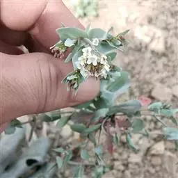 老时呈灰色或淡灰色,幼时绿色,上部平展或分枝;小枝肉质,具丰富乳汁。叶互生,长圆状线形,长7~15毫米,宽0.7~1.5毫米,先端钝,基部渐狭,全缘,无柄或近无柄;常生于当年生嫩枝上,稀疏且很快脱落,有茎行使光合功能,故常呈无叶状态;总苞叶千膜质,早落。花序密集于枝顶,基部具柄;总苞陀螺状,高约2毫米,直径约1.5毫米,内侧被短柔毛;腺体5枚,盾状卵形或近圆形