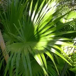 蒲葵 R. Br. ex Mart.),棕榈科蒲葵属木本植物。叶为扇形,两面均为绿色,…