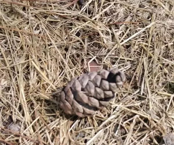 球果圆锥状长卵圆形,长10-20厘米,径5-8厘米,幼时绿色,成熟时黄色或褐黄色,种鳞张开,种子脱落,果梗长2-3厘米;中部种鳞近斜方状倒卵形,长3-4厘米,宽2.5-3厘米,鳞盾近斜方形或宽三角状斜方形,不具纵脊,先端钝圆或微尖,不反曲或微反曲,鳞脐不明显;种子黄褐色、暗褐色或黑色,倒卵圆形,长1-1.5厘米,径6-10毫米,无翅或两侧及顶端具棱脊,稀具极短的木质翅;