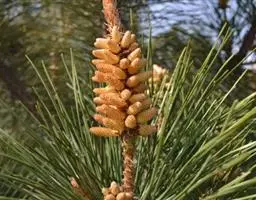 雄球花黄色,卵状圆柱形,长约1.4厘米,基部围有近10枚卵状匙形的鳞片,多数集生于新枝下部成穗状,排列较疏松。