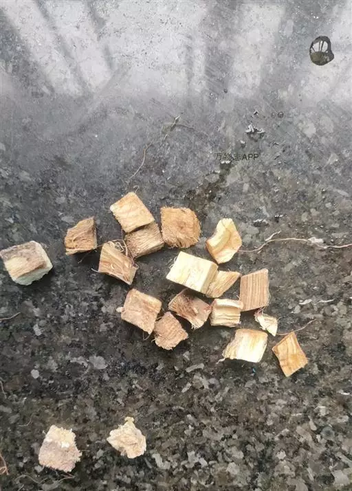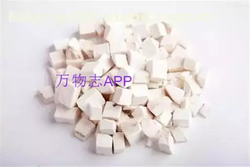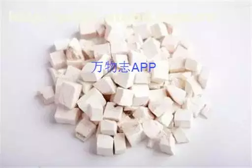 2、茯苓块:为去皮后切制的茯苓,呈立方块状或方块状厚片,大小不一。白色、淡红色或淡棕色。
