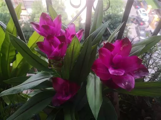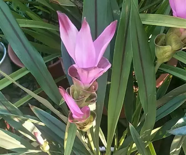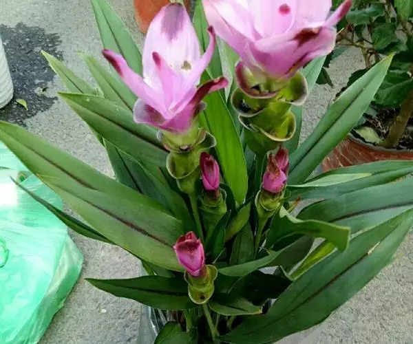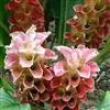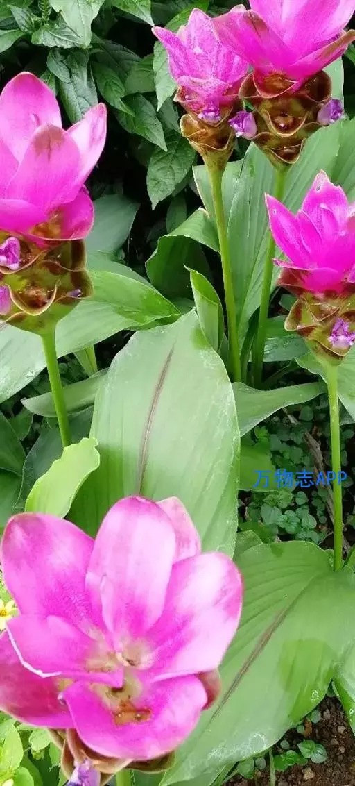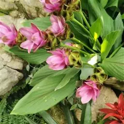 姜荷花因其花序亭亭玉立,粉红色苞片外形似荷花而被命名,同时又因其原产热带,花朵外形似郁金香而被称为“热带郁金香”。多年生球根草本花卉。株高30~80厘米,花径通常高于叶片。地下有纺锤形或圆球形根茎,球茎上有两排对生的芽,芽的生长有偏向一侧的习性,可连续产生多个,但春季种植后,通常先萌发第一个第一代芽,此芽常有5~7片叶,以后生长的芽只有3~4片叶。