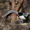 黑长尾雉大型鸡类,体长53~88厘米。雄较雌大。雄鸟通体紫蓝色,脸鲜红色,翅上有一条显著的白色翅斑…