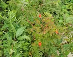 刺蔷薇:灌木,高1-3米;小枝圆柱形,稍微弯曲,红褐色或紫褐色,无毛,有细直皮刺。小叶片宽椭圆形或…